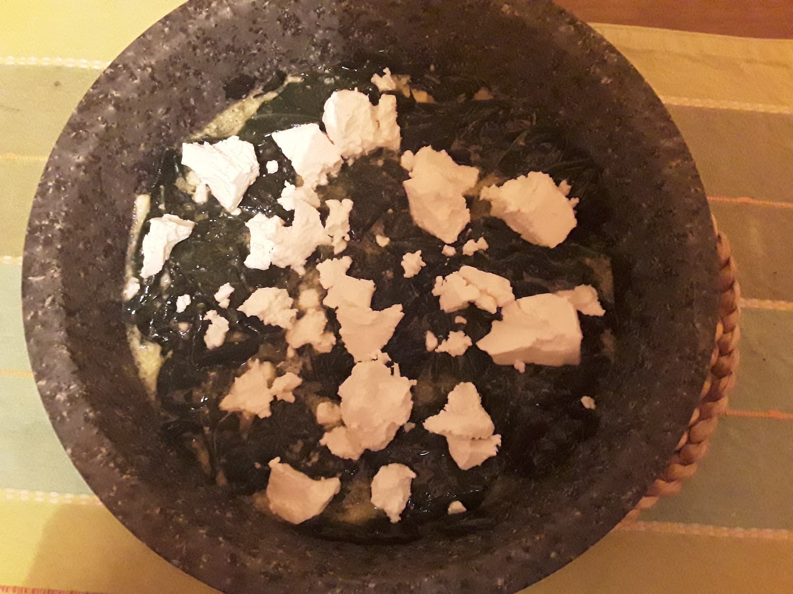 Pulire e lavare le foglie di cavolo e tagliare a strisce piccole e fare cuocere con un filo d'olio, il sale e il pepe.