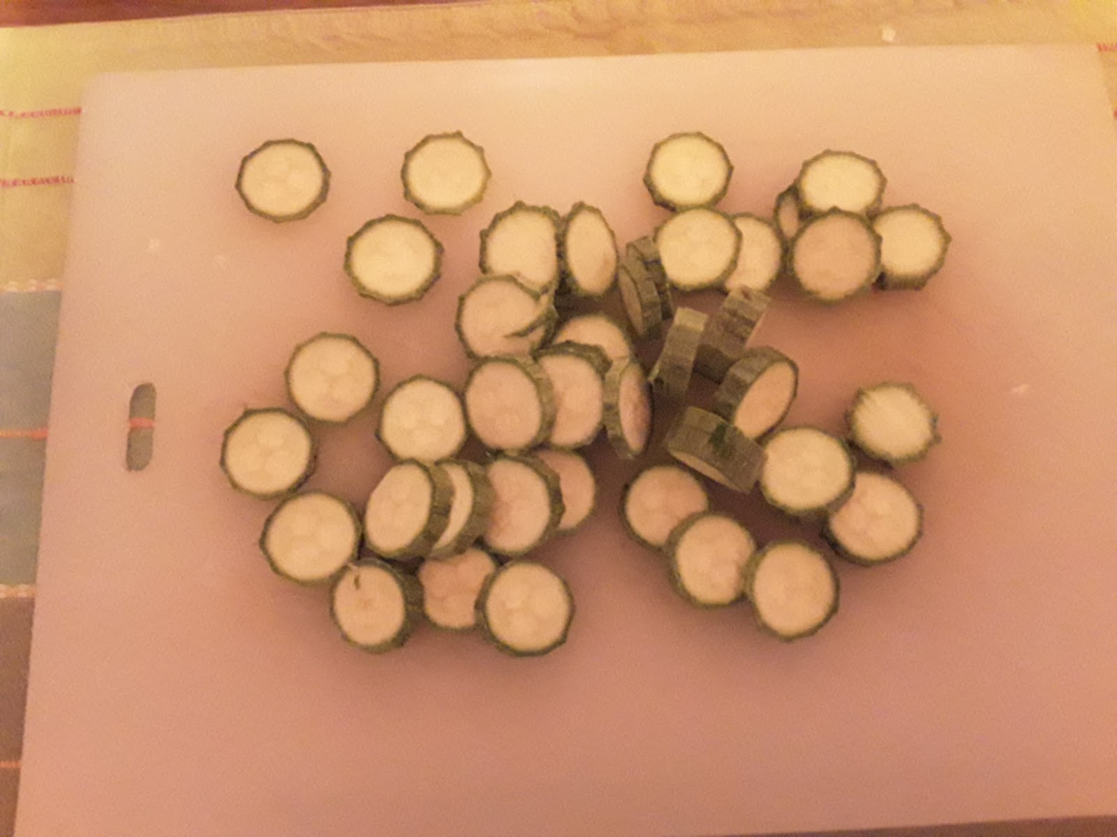 Pulire e lavare i funghi e le zucchine, tagliare i primi a fettine sottili e le seconde a rondelle.